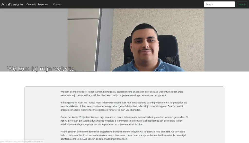 Dit is mijn uitgebreide portfolio, waarin ik de verschillende projecten en ontwerpen die ik met veel enthousiasme heb gemaakt, presenteer en benadruk. In dit portfolio geef ik een gedetailleerd overzicht van mijn vaardigheden en ervaring. Ik heb dit gedaan door gebruik te maken van de krachtige functies en responsieve mogelijkheden van Bootstrap, waardoor mijn werk niet alleen visueel aantrekkelijk is, maar ook optimaal functioneert op verschillende apparaten en schermformaten. Je kunt ook op de afbeelding drukken om daar naartoe te gaan. Trouwens, die zoekbalk werkt niet, want ik heb het daar voor de lol ingezet. Je hoeft niet op de link te drukken wanneer je naar ‘over mij’ gaat. Die CV is nog oud. Ik heb dat erin gezet als voorbeeld
